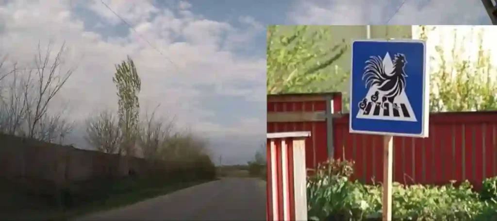 Atenție la găini! – este noul indicator pentru șoferi. Un fermier s-a tot săturat să aibă grijă de găinile care sunt „neastâmpărate” și traversează strada neregulamentar. Astfel, crescătorul a decis să facă o trecere destinată păsărilor.