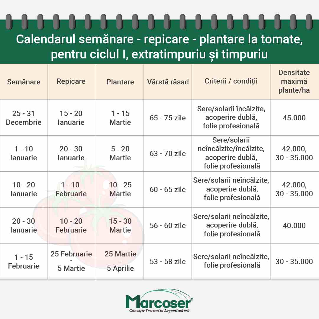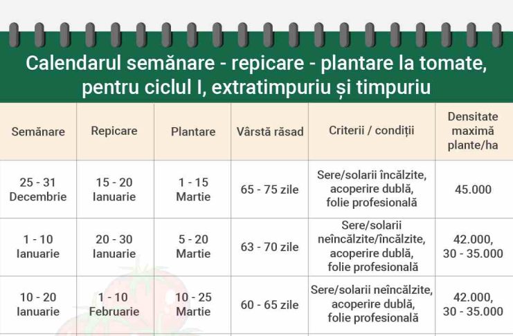 Lucrările principale la tomate implică mai multe etape esențiale. În primăvară, legumicultorii știu că trebuie să pregătească solul. Plantarea la tomate se face, de obicei, în perioada mai-iunie, evitând riscul de îngheț (în cazul în care gospodarul nu dispune de solarii).