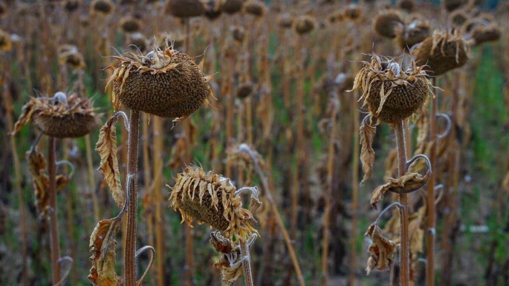 ”La floarea soarelui avem același spectru negativ pe care l-am enunțat la porumb. Avem un randamente la hectar de 1,69 tone, care ne coboară abrupt, de la proiecția inițială de 2,6 milioane de tone, ne duce undeva în zona de 1,88 milioane de tone la nivel național. S-a uscat, efectiv.