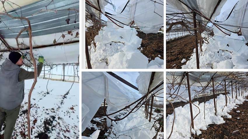 Grinzile groase și stâlpii din lemn s-au rupt, iar multe solarii modulare, considerate mai rezistente, nu au rezistat iernii severe. Mulți fermieri spun că pagubele sunt totale, fără șanse de recuperare, iar pentru unii costurile de reconstrucție sunt imposibil de suportat după doi ani deja dificili.