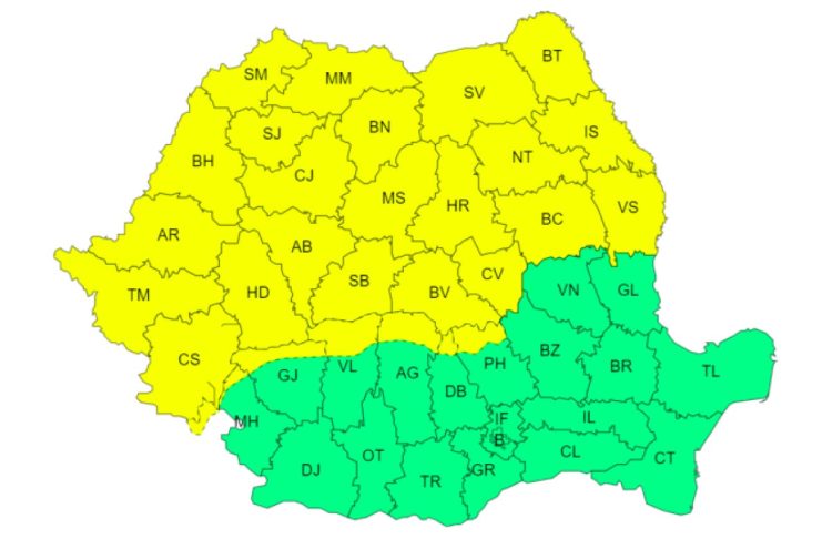 Fenomene meteo extreme – avertizări Cod portocaliu și Cod galben