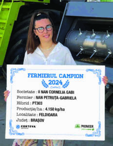 Și doamna Petruța Gabriela Nan a obținut rezultate foarte bune cu hibridul PT303, respectiv o producție de 4.150 kg/ha. Aceasta își desfășoară activitatea în localitatea Feldioara, județul Brașov. “Lucrăm 300 ha, dintre care 65 ha au fost semănate cu rapiță. Ca plantă premergătoare am avut grâu, astfel că terenul a fost scarificat, am fertilizat cu NPK -200 kg/ha și am intrat direct la semănat, pentru că avem semănătoare cu pregătire. Perioada de semănat a fost 17-20 august. Prima intervenție în cultură a fost cu un insecticid, apoi am intervenit cu o nouă trecere în care am aplicat erbicid, insecticid și îngrășământ foliar pe bază de bor. Tot în toamnă a mai fost cazul să aplicăm și un regulator de creștere. În primăvară am intervenit mai întâi cu un insecticid, apoi, la începutul lunii martie, am fertilizat cu 200 kg/ha de uree. Tratamentul al doilea a constat în aplicarea unui foliar pe bază de bor și a unui insecticid, următoarea trecere a fost cu fungicid și insecticid, iar ultimul tratament a cuprins fungicidul Capartis, un insecticid și îngrășământ foliar pe bază de bor. Toate tratamentele au fost aplicate cu drona, iar înainte de cel de al treilea tratament am mai fertilizat cu îngrășământ pe bază de sulf – 180 kg/ha. Recoltatul a avut loc în perioada 12-14 iulie”, a declarat doamna Nan. Aceasta a mai punctat faptul că fost mulțumită de acest hibrid, considerându-l unul stabil și cu o răsărire foarte bună, motiv pentru care în această campanie îl va semăna din nou, alături de hibridul PT314, în total o suprafață de 70 ha, adică toată suprafața cu rapiță.