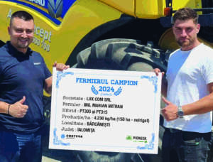 Hibrizii PT303 și PT315 au performat în ferma Luxcom, localitatea Bărcănești din județul Ialomița, acolo unde domnul ing. Marian Mitran lucrează 5.000 ha, fermă ce se află în extindere, și a obținut o producție de 4.230 kg/ha pe o suprafață de 150 ha. “Campania trecută am început cu 900 ha de rapiță, însă la final am recoltat 720 ha, pentru că am fost nevoiți să întoarcem anumite suprafețe. Cei doi hibrizi Pioneer au fost semănați după grâu și trebuie să spun că anul trecut am semănat direct, fără măcar a mai face dezmiriștire. Am semănat destul de devreme, respectiv 20 august, atunci am și fertilizat cu îngrășământ 18.46.0 – 150 kg/ha. Am intervenit și cu două insecticide, pentru că aveam probleme cu afidele, nu a fost cazul de a administra regulator de creștere, iar aproape de intratul în iarnă am avut câteva ferestre calde și am dat un fungicid împreună cu 1.2 l/ha de îngrășământ foliar pe bază de bor. În primăvară am fertilizat cu uree 150 kg/ha, nu am mai putut interveni cu azotat pentru că vremea a fost destul de ciudată și mi-a fost frică să intervin cu îngrășământ pe bază de azot pentru că are nevoie de precipitații pentru a se descompune. După aceea am intervenit cu un erbicid graminicid, mai apoi au fost două treceri cu fungicide, de fapt nu am făcut nimic special culturii pentru că vremea nu a permis. Sunt mulțumit de acești hibrizi, sunt stabili, și am făcut producție bună mai ales acolo unde ne-au ajutat și precipitațiile, pentru că anul trecut a plouat foarte ciudat, cu diferențe mari chiar și la 1 km distanță între zone“, a punctat fermierul campion. Domnul Mitran a mai adăugat faptul că în această toamnă va semăna toată suprafața de rapiță din fermă, aproximativ 1.450 ha, cu genetica Pioneer.