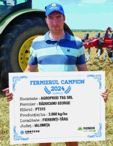 Următorul fermier campion este domnul Răducanu George din localitatea Fierbinți-Târg, județul Ialomița, care a ales hibridul PT315 și a obținut o producție de 3.860 kg/ha. “Lucrăm 370 ha, 90 ha au fost semănate cu rapiță după cultură de grâu. Am pregătit terenul cu Tiggerul, apoi am intervenit cu combinatorul, iar înainte de pregătirea patului germinativ am fertilizat cu îngrășământ complex 15.40.0 – 200 kg/ha. Am semănat la finalul lunii august, începutul lunii septembrie, iar prima intervenție în cultură a fost cu erbicid și insecticid imediat după semănat, după care a fost nevoie de o nouă intervenție cu erbicid și insecticid, la 2-3 săptămâni de la prima intervenție. Ultima trecere din toamnă a fost cu erbicid pentru frunză lată. În primăvară, în luna martie, prima administrare a fost cu insecticid, fungicid și îngrășământ foliar pe bază de bor, după care la înflorire am intervenit din nou cu fungicid și insecticid sistemic. În ceea ce privește fertilizarea de primăvară, am administrat în luna martie 200 kg/ha azotat de amoniu. Am recoltat la finalul lunii iunie, iar hibridul mi s-a părut foarte bun, a stat verde, sănătos, nu s-a scuturat, cultura nu a căzut, chiar a fost ok și mi-a oferit o producție bună pentru zona unde am avut eu rapița. L-am ales și în această toamnă pentru cca 80 ha“, a precizat domnul Răducanu.