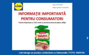 Lidl România a anunţat că retrage de la vânzare şi de la clienţi, toate loturile de napolitane cu Salmonella. Potrivit Autorității Naţionale Sanitar Veterinară şi pentru Siguranţa Alimentelor (ANSVSA), este vorba despre napolitanele produse de Pak Rampart d.o.o, unde s-a constatat prezenţa Salmonella Typhimurium.