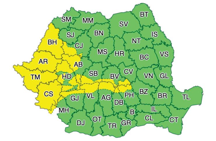 Potrivit meteorologilor, în intervalul menționat, vântul va avea intensificări în Banat și în Crișana, precum și în Carpații Occidentali și în Carpații Meridionali, cu viteze în general de 55-65 km/h. La altitudini de peste 1700 m, vor fi rafale de 80-100 km/h.