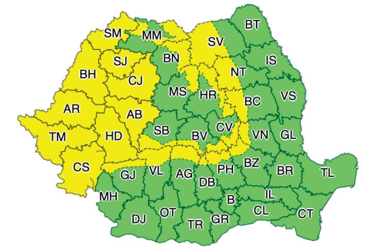 Potrivit meteorologilor, vântul va avea intensificări pe parcursul zilei în Banat, Crișana, vestul și nord-vestul Transilvaniei și în zonele montane cu viteze de 55-70 km/h, iar seara și noaptea mai ales în Carpații Orientali. La altitudini mai mari de 1700 m, rafalele vor depăși 90-100 km/h.