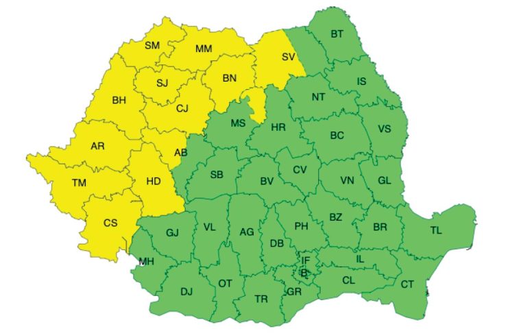 Potrivit meteorlogilor, în intervalul menționat, în Banat, Crișana, Maramureș, vestul și nordul Transilvaniei, precum și în Carpații Occidentali, nordul Carpaților Orientali și vestul Carpaților Meridionali va ploua și se vor acumula cantități de apă de 25-40 l/mp și, izolat, de peste 50 l/mp. La munte ploile vor determina topirea stratului de zăpadă, iar la altitudini de peste 1500 m, în nordul Carpaților Orientali, trecător vor fi precipitații mixte.