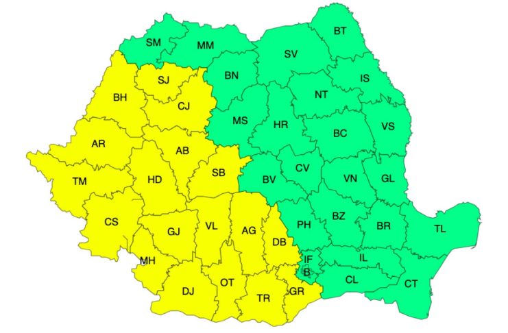 Potrivit meteorologilor, îîn intervalul amintit, în Oltenia, Banat, Crișana, vestul Transilvaniei și al Munteniei vor fi perioade cu instabilitate atmosferică accentuată care se va manifesta prin averse, descărcări electrice, intensificări ale vântului și izolat grindină. În intervale scurte de timp sau prin acumulare cantitățile de apă vor fi de 25-35 l/mp și, izolat, de peste 40-50 l/mp.