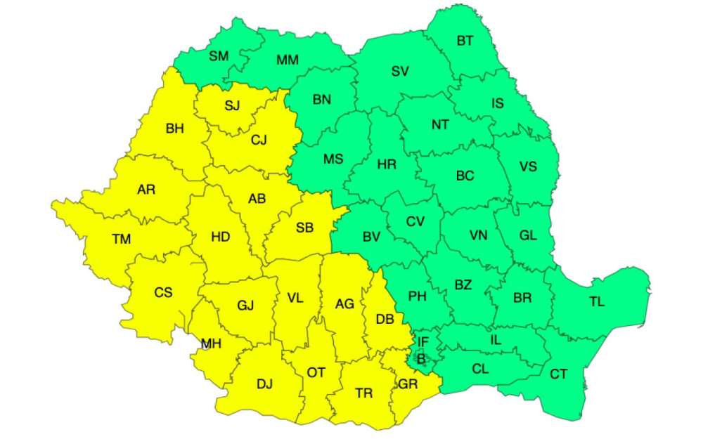 Administrația Națională de Meteorologie (ANM) a emis miercuri dimineață o nouă avertizare Cod galben de instabilitate atmosferică temporar accentuată și cantități însemnate de apă, valabilă în intervalul 22 mai, ora 10:00 – 23 mai, ora 10:00, în 18 județe ale țării (vezi harta).