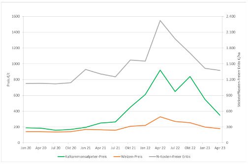 Privind retrospectiv, ar fi fost ideal să se vândă producția de grâu ce urmează a fi recoltată în 2023 încă din iulie 2022 cu un contract forward și să se cumpere îngrășământul în primăvara lui 2023, ceea ce ar fi dus la venituri de peste 1700 EUR/ha scăzând costul azotului. Cea mai neinspirată combinație este achiziționarea de îngrășăminte din toamna anului 2022 și vânzarea cerealelor în aprilie 2023, cu un venit de sub 900 €/ha.