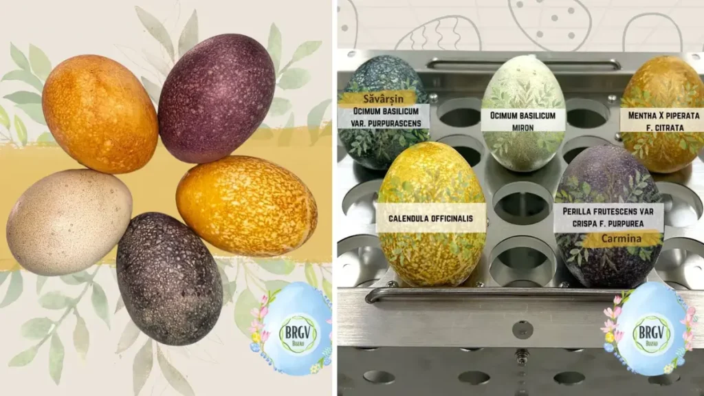 „Am preparat câte un decoct din fiecare plantă, în care am introdus ouăle fierte, lăsându-le peste noapte (~15 ore) la temperatura camerei. Pentru a stabiliza culoarea și a spori aderența pigmentului, am adăugat acid acetic alimentar (9%) în băile de pigmentare. Rezultatul final: ouă vopsite natural, cu o paletă surprinzătoare și armonioasă de culori, obținute exclusiv prin valorificarea resurselor genetice vegetale. Fiecare culoare poartă amprenta unei plante, a cunoașterii și a grijii pentru biodiversitate”, informează Banca de Gene Buzău.